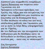 Οι εκλογές για το 15μελές μαθητικό συμβούλιο θα διεξαχθούν την Παρασκευή 29 Οκτωβρίου. Στο ψηφοδέλτιο ο κάθε μαθητής έχει δικαίωμα να σημειώνει από ένα (1) μέχρι (7) σταυρούς με μπλε στυλό. Οι συμμαθητές σας που προβάλονται και ξεχωριστά είναι αυτοί που είχαν την προνοητικότητα να χρησιμοποιήσουν την δυνατότητα που τους παρείχε η ιστοσελίδα του σχολείου μας.